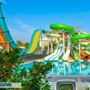Ana havuz yanında jakuzi havuzu mevcut olup kaydırak bulunmamaktadır, büyük kaydıraklar 9 adet olup bahçe alanındadır.