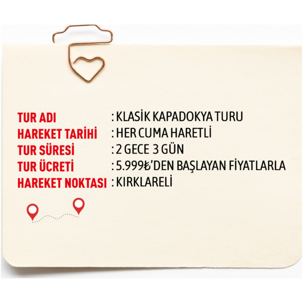 • Tur süresince çekileceğiniz fotoğraflarınıza renk katmak için, dilerseniz aksesuar şapka vs. eşyaları sırt çantanıza almanızı hatırlatırız.